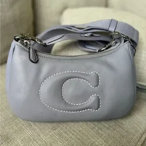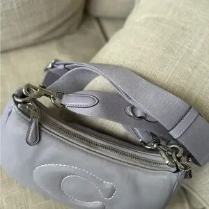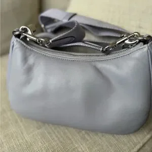 Coach puffy crossbody bag in soft lilac leather looks like a high end statement piece from coach. The thick strap is comfortable and steady.