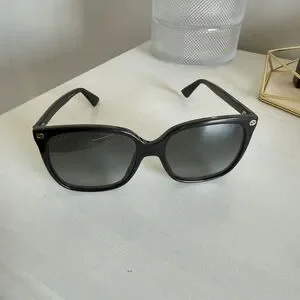 Elegant Gucci sunglasses featuring a black frame with gold accents. Ideal for a chic style.