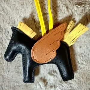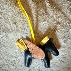 Add a playful touch to your accessories with this black and yellow horse-shaped keychain. Perfect for adding a pop of color to your bag or keys.