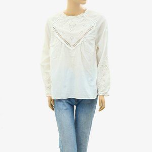 Sezane Alois Blouse Top Eyelet Embroidered White Cotton Floral