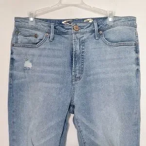 Stylish distressed women's jeans in a classic blue shade. Perfect for casual outings.