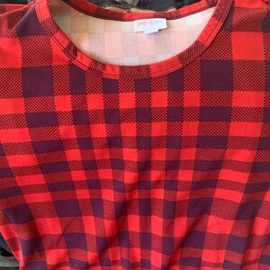 This is Lularoe’s Red and Black Plaid dress that pulls over your head.
