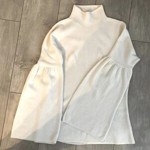 Beautiful merino wool cream sweater with pretty bell sleeves and simple mock neck design. The perfect length to tuck in or leave loose. The bell sleeve makes this a unique feminine sweater. New without tags.