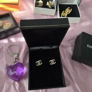 A+ Condition USED CHANEL earrings with iconic logo design. Perfect for adding elegance to any outfit. Classic tweed motif. Replacement box.