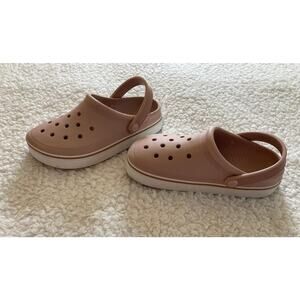 CROCS off court platform pink clay slip on, wear with or without strap, unisex women's 7 or men's 5, excellent condition, barely worn, water friendly, lightweight-