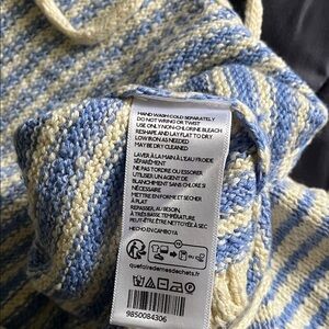Features: Wide scoop neckline, sweater fabrication, tie detailing at shoulders, dropped armholes, ribbed bottom hem- 1% Elastane