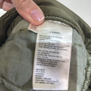 L’AGENCE Paris women’s high-rise skinny ankle pants. A flattering bodycon style. Beautiful deep olive green five pocket, Jean style. Fabric is soft like suede, but not,lush as velvet, but not. New with tags size 28 cropped style see photo for measurements.