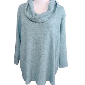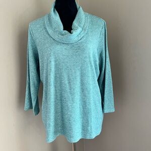 J.Jill Wearever Waffle Teal Cowl Neck Top sz L