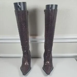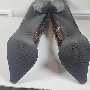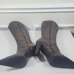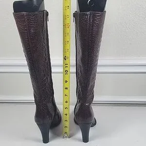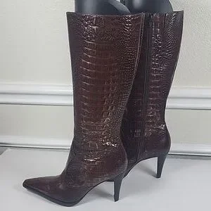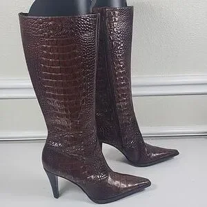 Gianni Bini Brown Croc-Embossed Heeled Boots