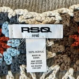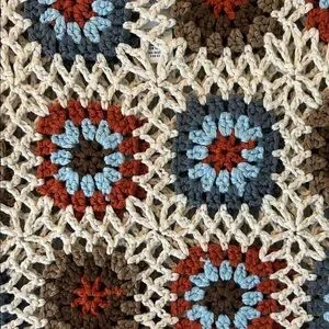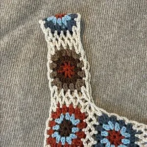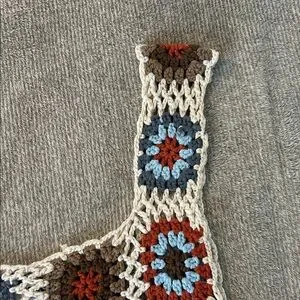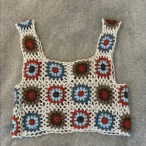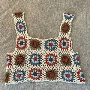 This earthy crochet crop top has a cream, brown, orange, and blue color pallet. It has never been warn and is in brand new condition. Perfect transition piece from summer to fall!