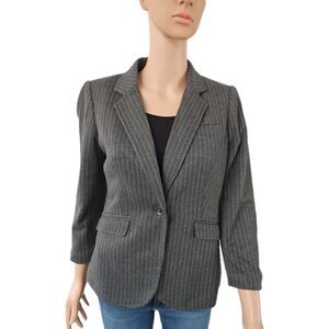 The Limited Women's Blazer is a stylish and classic suit jacket in a simple gray color, perfect for business occasions in the fall, winter, and spring seasons. This one-piece blazer features a notch lapel style, long sleeves, and a lined interior for added comfort and quality. Made from polyester, this regular fit blazer is designed for a clean, professional look with a single-breasted cut. Perfect for adding a touch of sophistication to your outfit, this blazer is a versatile and timeless piece for any wardrobe.