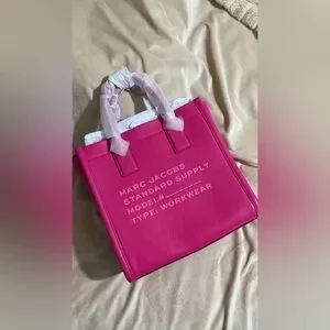 Marc Jacobs Medium Standard Supply Leather Tote in Hot Pink. Brand new with original tags, strap, and authenticity card. Stylish and vibrant, this tote bag is perfect for any occasion. The bold pink color adds a pop of color to your outfit. Crafted with quality and elegance in mind.
