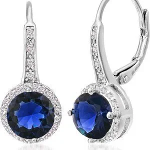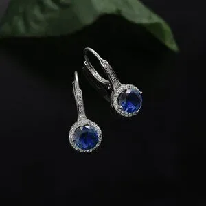 Product details Item width 0.2 inches Material Sterling Silver Metal type Sterling Silver Back Finding Lever Back Earring design Dangle Gem type Cubic Zirconia About this item Metal Type: Sterling Silver with Rhodium Plating Stone Type: Simulated Blue Sapphire and Cubic Zirconia . CZ , a man made stone, is very durable with a 8.5 on the hardness scale and offers brilliant sparkle for every day wear. Dimensions: .88" x .35" x .20" Jewels are classic, timeless and traditional masterpieces that have been hand crafted to give the perfect amount of elegance to your outfit. Fashionable enough to wear everyday, yet stylish enough for sp