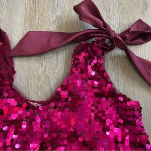 In excellent used condition. Hot pink sequins with raspberry satin bows / tule. Size small, true to size