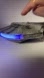 Approximately 10" long and 7" wide. There a a few of the pieces missing (cockpit cover, satellite, and center hole piece). Lights and sounds work.