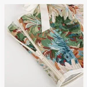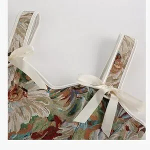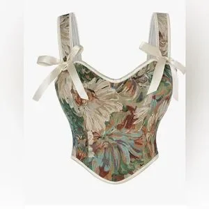 This stylish floral tapestry crop top is adorned with elegant ribbon details, making it a chic addition to your wardrobe.