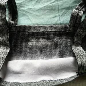 Stylish crop top with a vibrant neon yellow and gray design. Features comfortable straps and a textured fabric.
