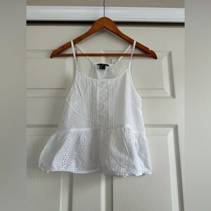 Light and breezy linen-like shirt with a stylish racerback design, perfect for warm weather or layering.