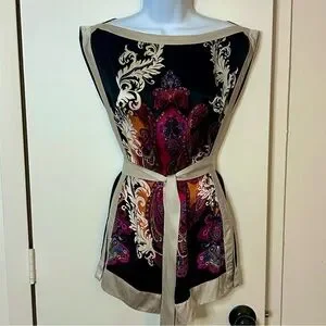 Bebe | 100% Silk Tunic Blouse w/ Wrap - Size XS - Paisley Print