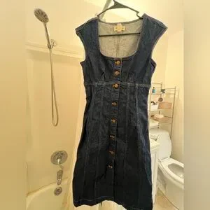 Chic denim midi dress with button-down front. Ideal for casual wear.