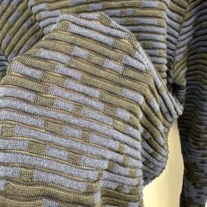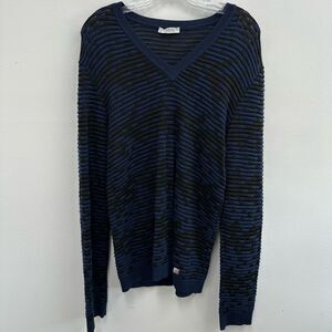 Versace Collection Blue & Black Wool Blend Mesh Knit V-neck Sweater Size M