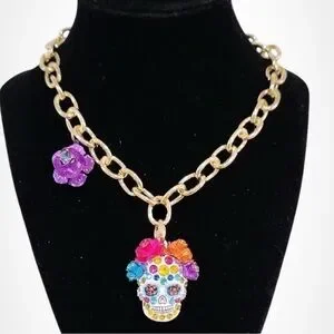 NWT ⚜️💖⚜️ Betsey Johnson Gorgeous SUGAR SKULL SHORT PENDANT MULTI