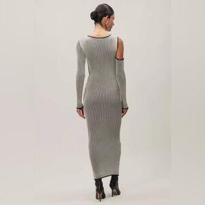 Introducing the "Ima Dress" in Dalmatian - this long-sleeve maxi dress captivates with its striking two-toned design and bold asymmetric cuts. The contrast between the colors and the unique silhouette creates a modern, dynamic look, perfect for making a statement at any event.