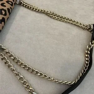 Chic crossbody with leopard print and chain strap. Perfect for any occasion.