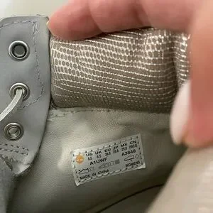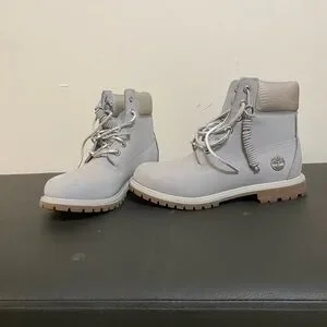 Stylish and sturdy combat boots. Light gray with durable laces. Ideal for everyday wear.