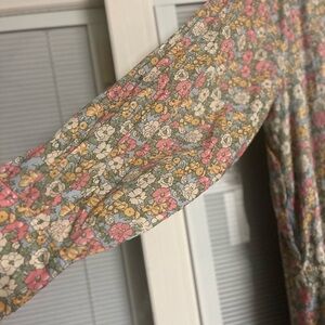 Charming dress with vibrant floral print. Features long sleeves and button-up front. Perfect for casual outings.