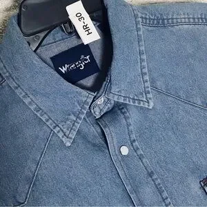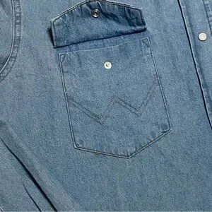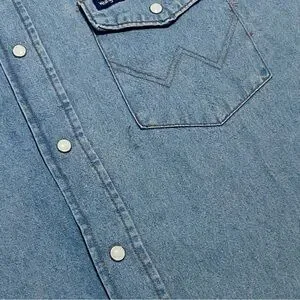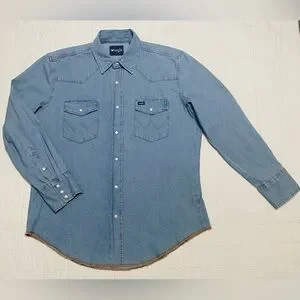 Wrangler Men's Stonewash Cowboy Cut Snap Front Long Sleeve Cotton Shirt Size L