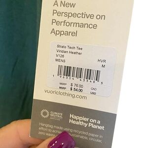 NWT Vuori Men’s strato tech tee VIRIDIAN HEATHER Size: M