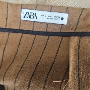 Zara Brown Tan Burnt Orange Stripe Printed Pareo Skirt With Knot Size L