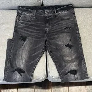 Men's American Eagle Athletic fit Black Distressed Slim Jeans 36x32