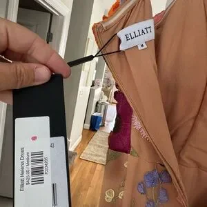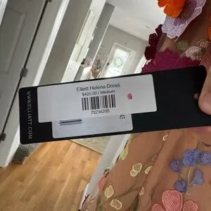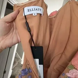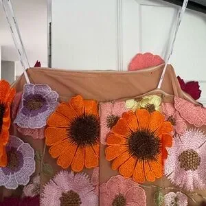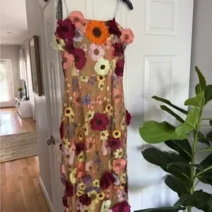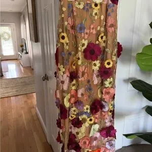 Never worn, new with tags! Elegant dress with intricate floral embroidery.