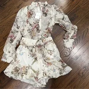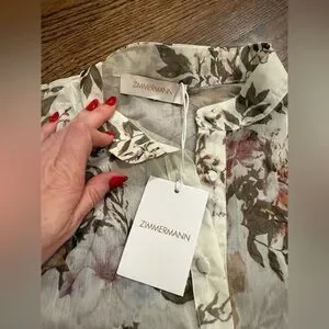 Sheer blouse with floral design. Button-up front. Lightweight and stylish.