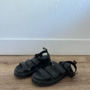 Sleek black leather sandals with a strappy design. Ideal for everyday wear.