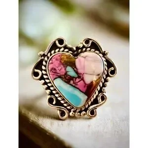 Cotton Candy Turquoise | Heart Shaped Ring | Size 5-10 Adjustable