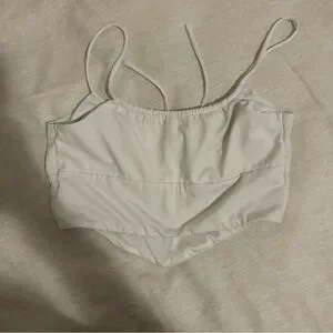 Elegant white crop top with ruched detailing. Perfect for casual outings.