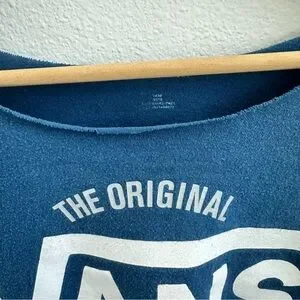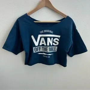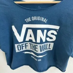 Vans "Off the Wall" Blue cropped T-shirt. soft hand feel knit fabric with nice worn washed look. large bold Art at front body! 🛹✨ relaxed wide super cropped fit!