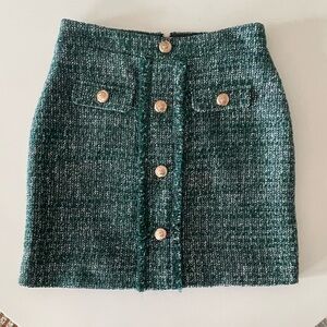 Walter Baker Green Tweed Mini Skirt w/ Gold Buttons - Size 6