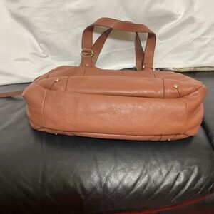 Stylish Lodis shoulder bag in soft tan leather. Features several sections inside and out. Bag has a main center zipper as well as a front zip pocket with double straps that are durable and sturdy. Ideal for everyday use.