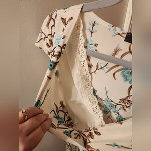 *Extra Description- B. Moss womens Medium but since can't find tag might have come off in wash as well so please refer to the above size measurements in pics for fit. Unique pretty floral pattern. Fited with prety tie back. Also has sown in like lil brawlet with lace trim.