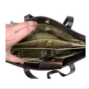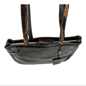 Falor Deep Brown Crocodile Embossed Leather Shoulder Bag Purse Calf Hair Strap