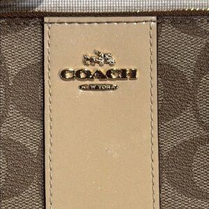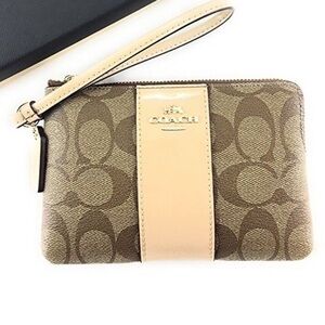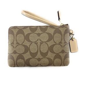 Coach Signature Leather Khaki/Platium Corner Zip Wristlet