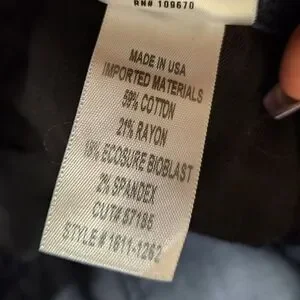 59% cotton, 21% rayon, 18% EcoSure BioBlast, 2% spandex