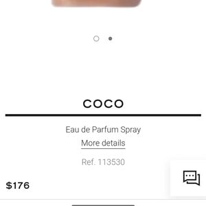 MORE DETAILS Authentic Chanel Coco Eau de Parfum in the iconic sleek black and gold bottle. Luxurious fragrance for any occasion. 3.4 oz Large bottle 97% full only 4 sprays used. A little goes a long way. Smells luxurious. Retails for $176 on Chanel website! Original box included.