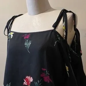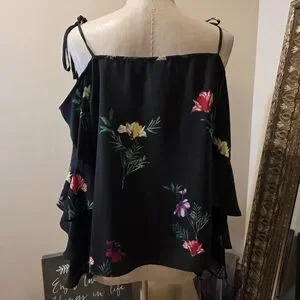 Vince Camuto Black Tropical Garden Off The Shoulder Top. Sz Med. NWOT.