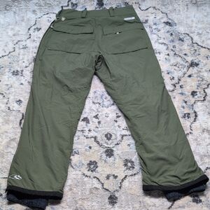 snowboard pants, ski pants, insulated snow pants, cargo snow pants, men’s medium snow pants, winter sports, olive green snow pants, Bonfire pants, boot gaiters