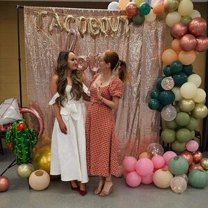 Elegant white dress with ruffle sleeves. Features a fitted bodice and a high slit. Perfect for special occasions. Worn once and comes dry cleaned.